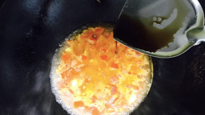 这道菜是我男朋友教我的,现在他已经变成我老公了,我做的是他的改良版,他还会加入青椒一起炒,不过我不爱吃青椒,他不和我一起吃饭的话,我就只用番茄,毕竟,我是一个没有了番茄就做不了很多菜活不下去的人。