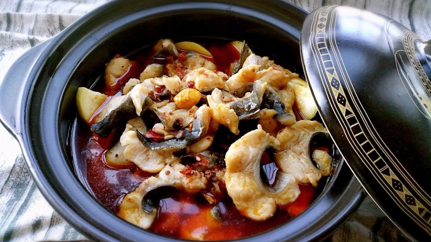 3. 鱼肉煮到4分熟的样子,就放在砂锅里煮。煲出来的鱼是3、另外一种味道。这里选用陶煲王的砂锅。