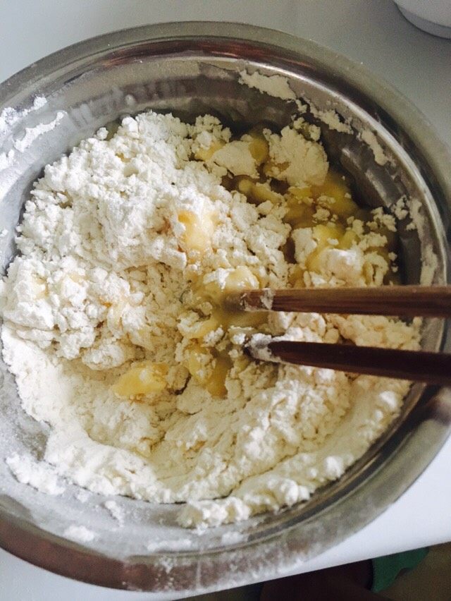 3. 把油皮的馅混合,开始揉面,搓,揉,摔。
