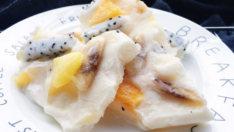 14. 将冻硬的水果酸奶薄脆取出 用刀切成小块 (我是直接用手掰的 )