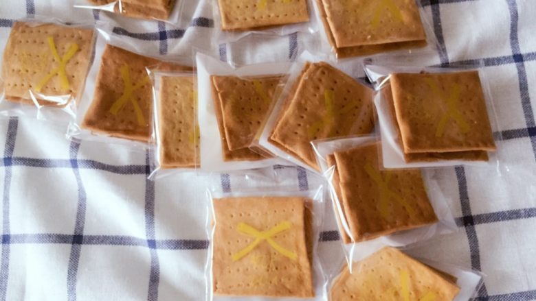 蔓越莓牛轧糖苏打饼干,切分成边长5cm左右的正方形薄片