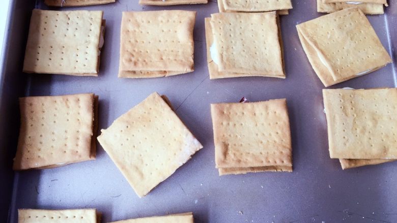 24. 再取一饼干盖在牛轧糖上面,轻轻按压下去