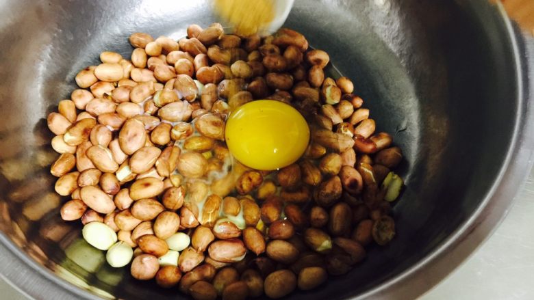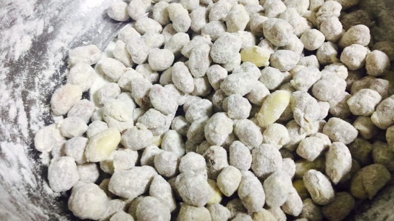 5. 炒锅加油烧热 7成热 改小火 沿锅边下花生米