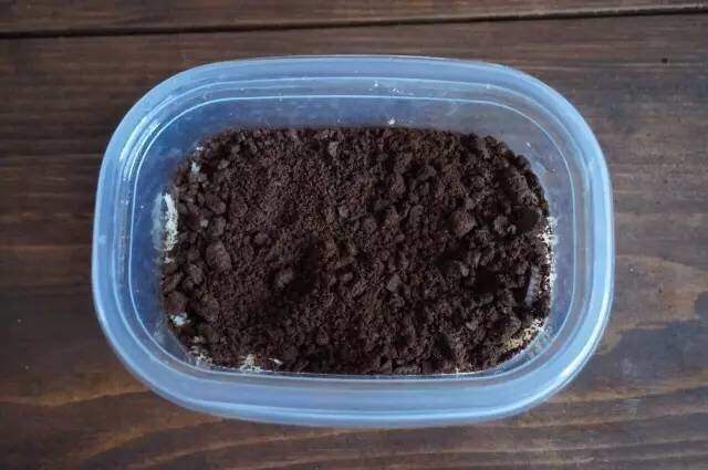 1. 01 | 将奥利奥中间的夹心糖霜刮掉,尽量刮干净,放进保鲜袋,用擀面杖碾碎。