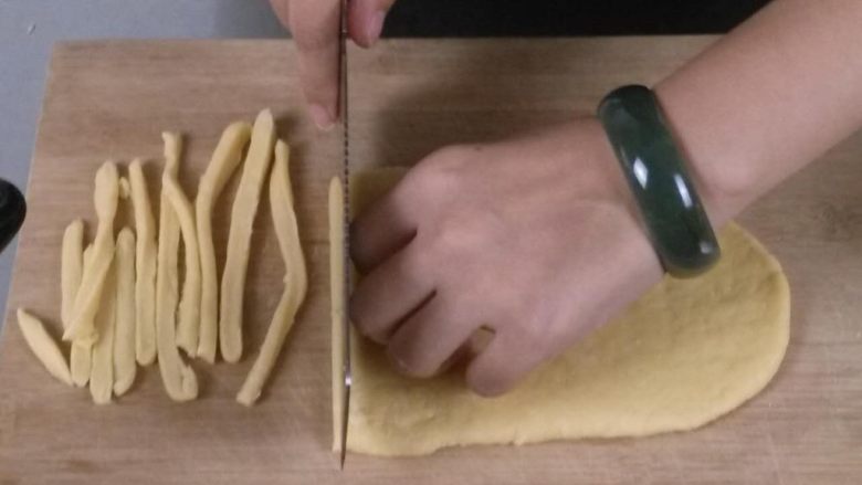 4. 锅中倒入适量的油,油热后放入面条,炸成金黄色