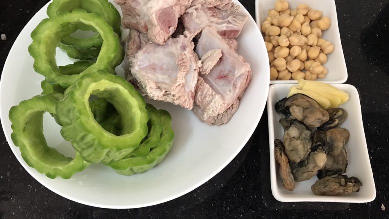 作为一个地道的广东妹子,虽厨艺不精,但靓汤还是随时能喝起的! 皆因老火靓汤是广东人数千年传承的食补养生方式!它制作简单但要求取材搭配佳宜,随季节转换而食材变化,小火慢煲,口味丰富!自古有云:汤水最养人!汤容易消化且易吸收,适合大多数人群!作为一个喜欢为健康下厨的煮妇,以下这道集健康与美味一身的靓汤自然必不可少! 排骨:补中益气,强健筋骨 苦瓜:清热解毒,增强免疫力 蚝仕:滋阴除湿,养颜润肌 鹰嘴豆:有“快乐豆”之美誉!补血养颜,延缓衰老等! 所以高温酷热之时,赶紧的喝起来,为身体添加能量为健康加油!