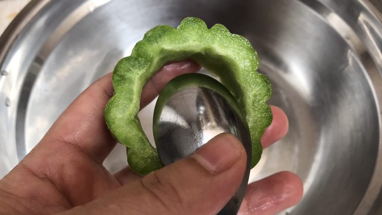 7. 用小勺把中间白色部门挖出,因为这部分比较苦