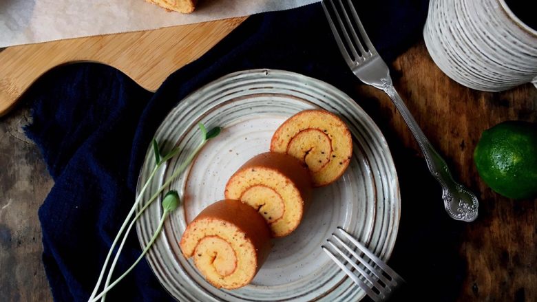 17. 出炉后无需倒扣 直接放烤架上冷却到有手温时开始卷 左右两边直切 前后两边斜切