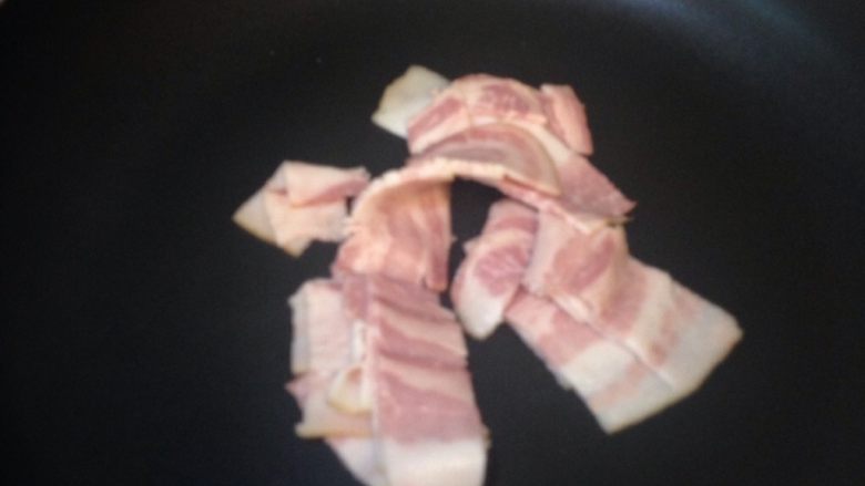 8. 加入培根拌炒,一滴水都不加,菇類會出水
