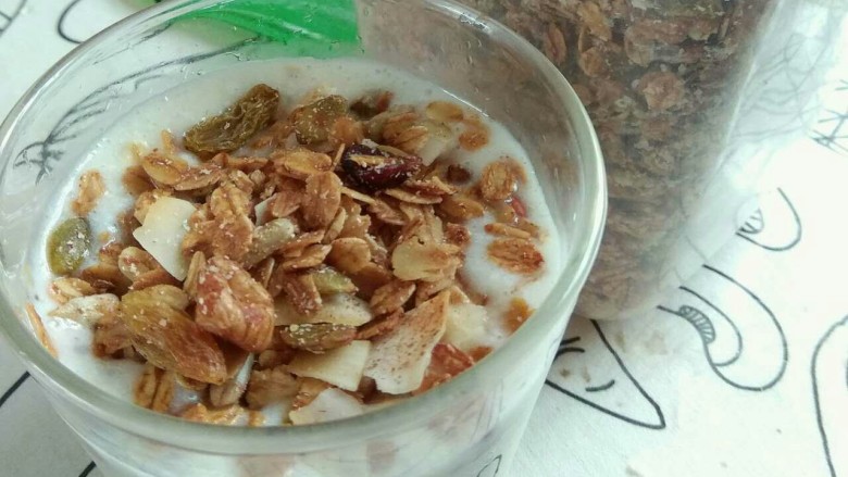 - 特别推荐加一些喜欢的香料,如肉桂粉,烤起来非常香甜温暖的味道。也可以做成各种各样的口味的,如香草风味,可以在混合调料时加1t香草精;可可风味,在混合调料时加1t可可粉,烤好放凉时加入一把可可豆;椰子风味,烤到最后10分钟加入椰蓉(易糊)混合均匀一起烤,混合果干的时候加入椰子片;抹茶风味,调味时加入2t抹茶粉,做抹茶风味推荐搭配南瓜子和蔓越莓干,颜色搭起来好看!