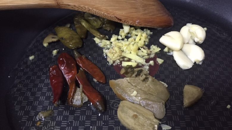 7. 热锅热油,煎鱼头鱼骨,煎至有微微金黄色,加入开水末过鱼肉,煮鱼汤