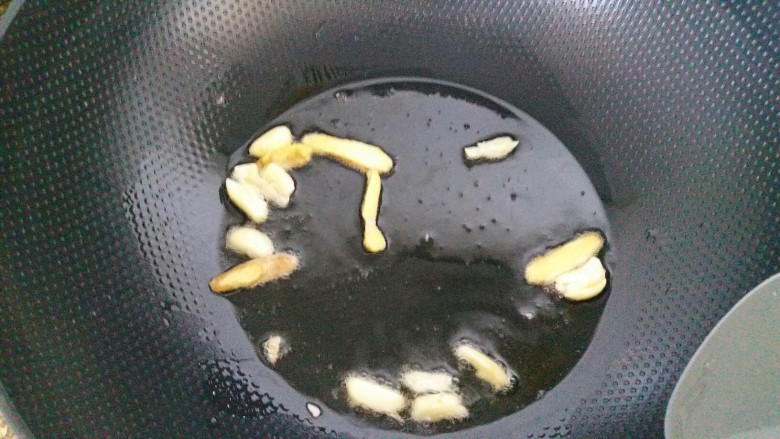 5. 锅内放入适量花生油,大蒜和生姜爆香