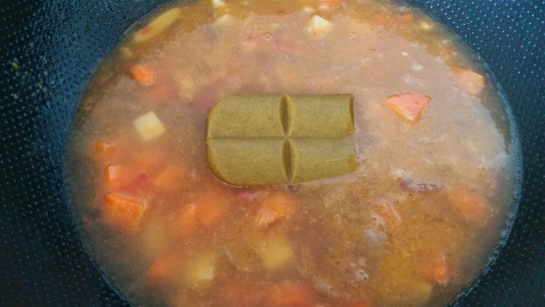 11. 下咖喱进去一起煮,用了一盒咖喱的三分之二