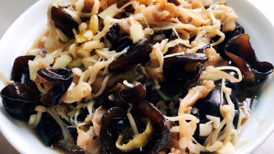 10. 将煮好的肥牛,木耳,金针菇捞出来,稍沥干水,放在一个大盆里