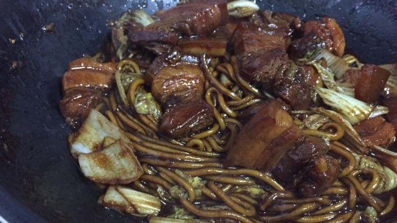 6. 煸炒至五花肉表面金黄,同时出了很多油