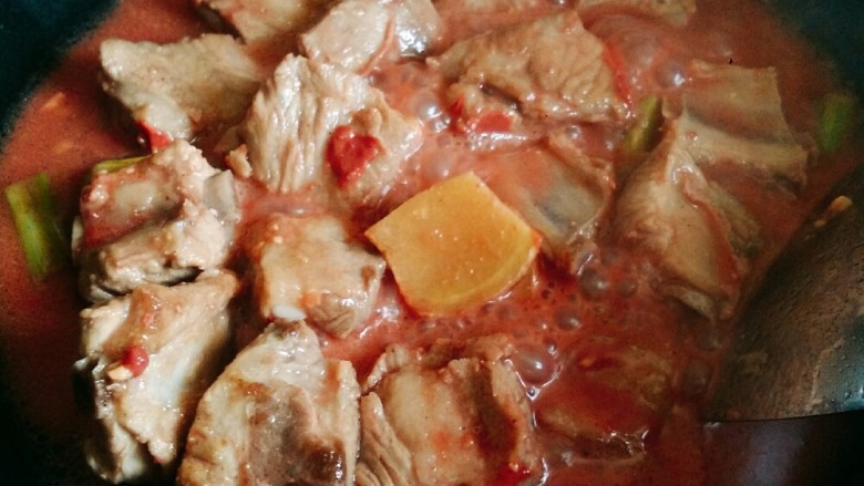 5. 锅里加油,放香料煸炒 加排骨翻炒到表面微微焦黄