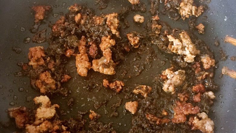 6. 秘密武器来咯,就是这个放入肉末(注意不要放多了,不然会太咸)中翻炒