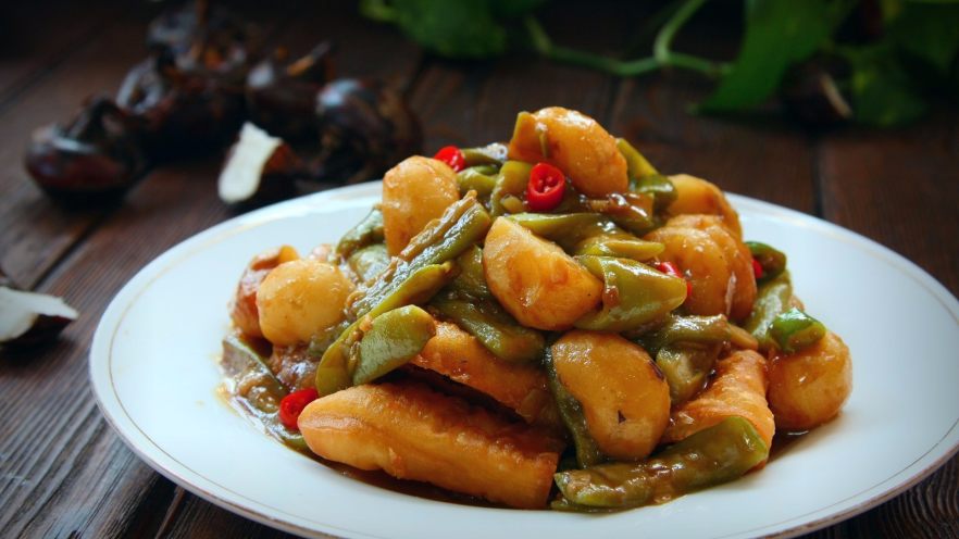 适合夏季的解暑小菜,油条的酥香,马蹄的甜脆,丝瓜的绵软会冲击您的味蕾,让您欲罢不能。 这里的“鬼”指是油条,“马”是马蹄(荸荠)。据说炸油条和秦桧有关,民间传说公元1142年,岳飞被秦桧和王氏施计陷害于风波亭。京城百姓闻讯之后,人人义愤填膺,风波亭附近一小摊老板遂抓起一块面团捏成一男一女两个小人,将它们背靠背粘在一起,丢进油锅,连声高呼:“都来吃油炸秦桧啦!”一时间以大嚼“油炸秦桧”泄愤。