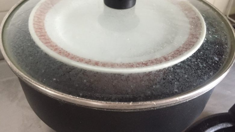 7. 为了不让水蒸汽进入肉内,加盖个碟子