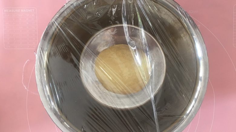 12. 混合后,盖上保鲜膜,静止醒面。
