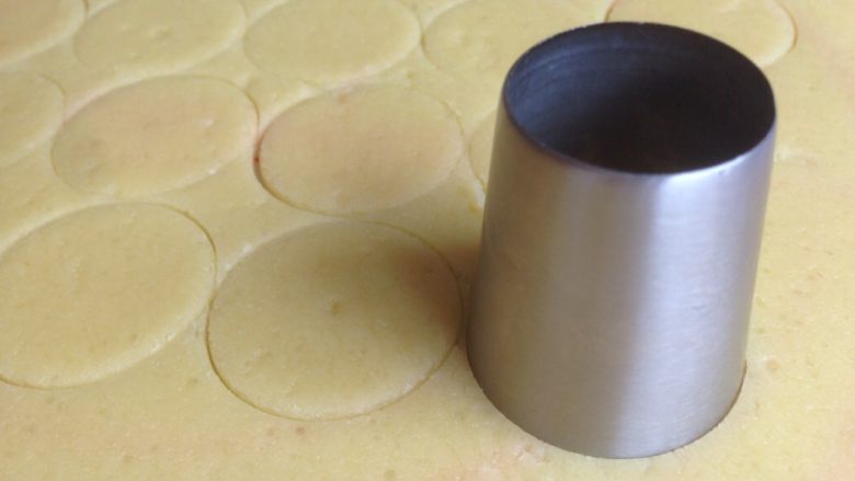 9. 面团擀平擀薄,用俄罗斯花嘴大的一边压出圆形