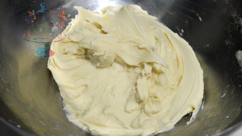 10. 加入大概1/3的芸豆泥之后,就可以换电动打蛋器来操作了。换上和面钩。依然是每加入一次芸豆泥都要混合均匀后才可以加入下一次。