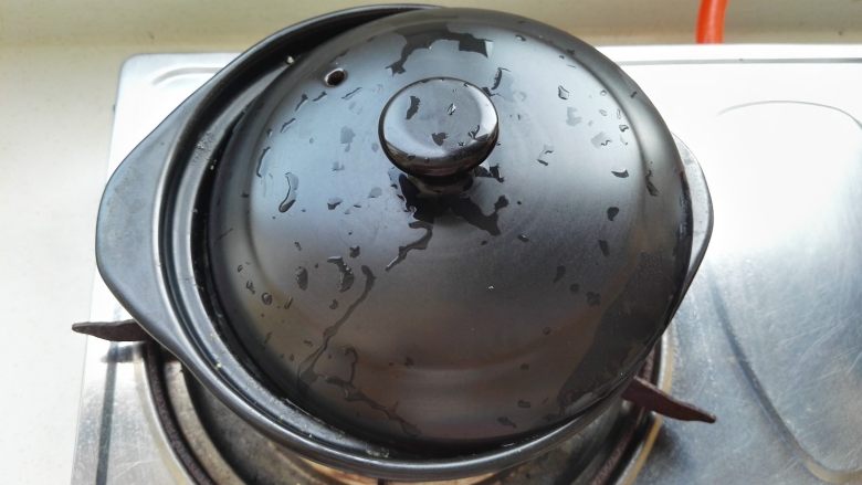 3. 大火烧开转最小火慢慢熬(可以让砂锅盖留条缝防溢锅)。