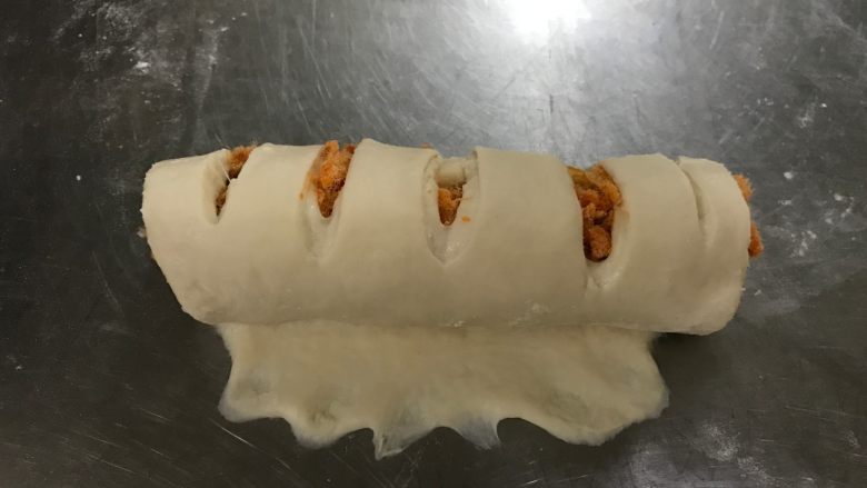 12. 面团上放香肠和肉松