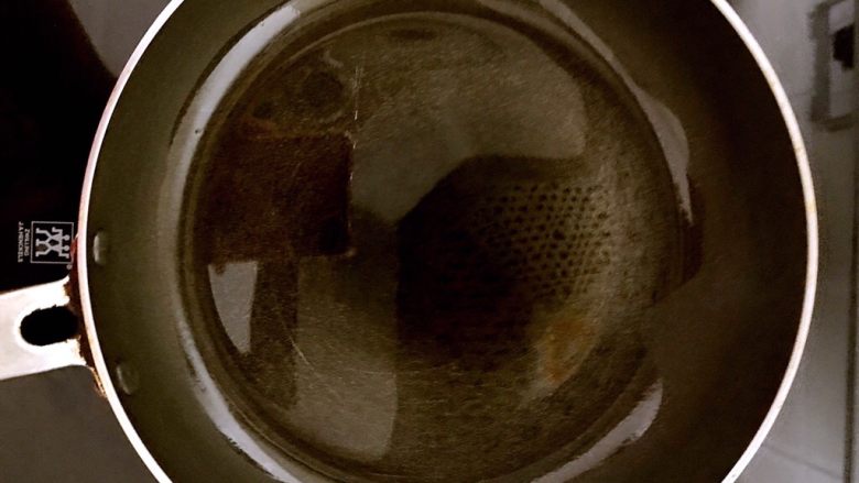8. 锅内加入白糖,同时加入半碗清水,温火慢慢熬制糖汁,要不停的搅拌,熬到糖汁越来越浓,像这个样子就可以了