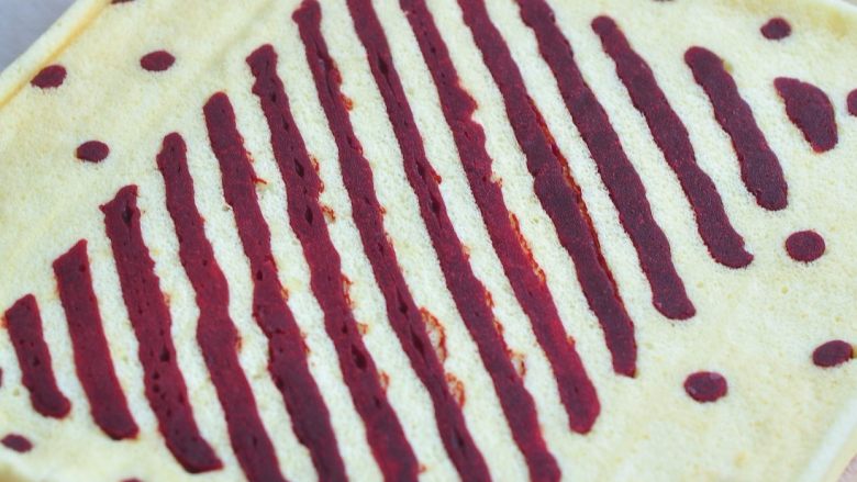 5. 将面糊装入裱花袋中,按图案挤上条纹,放入冰箱冷藏。