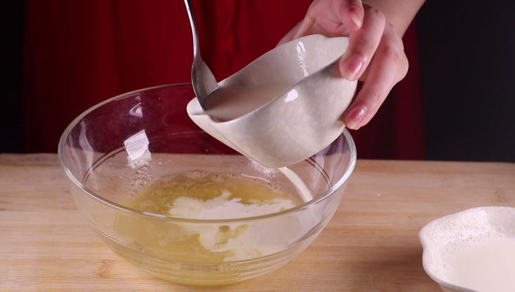 7. 用筷子将蛋液跟白砂糖拌匀。
