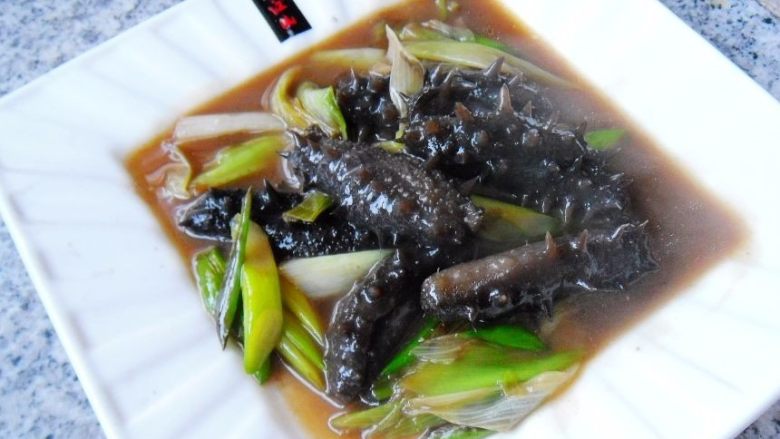 烹制“葱烧海参”的主料宜选用干海参泡发后的为好。我这次用的是鲜海参,这种海参遇热之后急速收缩,质感像胶皮一样,所以,还得用文火将其煨制的软烂才可以进一步烹制。 海参中含有丰富的蛋白质和钙等营养成分,海参之所以是滋补珍品,不仅在于它的营养价值的丰富,还在于海参的适合人群的广泛。 海参本身没什么味道,怎么做都可以,关键要在烹制的过程中使其入味,这是对烹制技艺的考验。