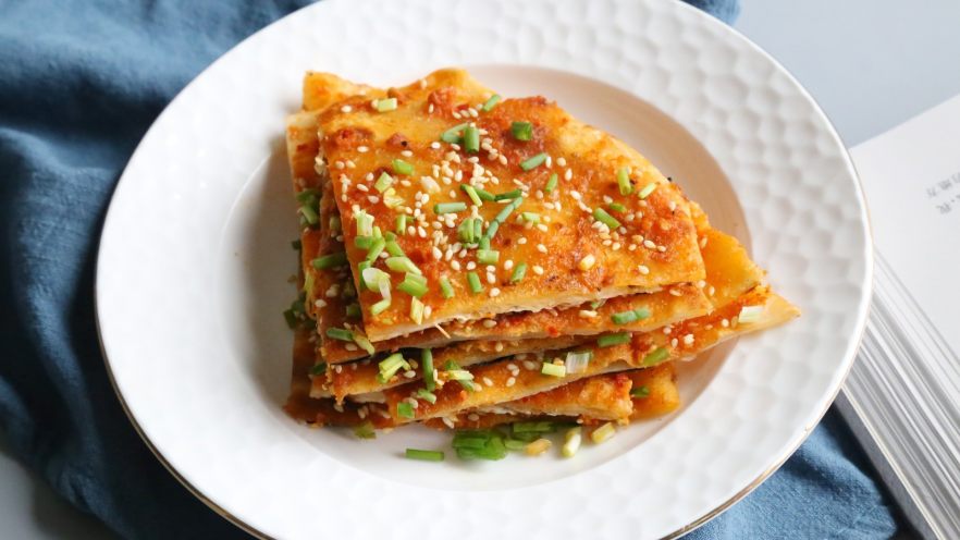 土家族的酱香饼,带有千层饼的酥脆,以及特质酱料的咸香,第一次吃就会让人爱上它。 如果第一天晚上将面团和酱料做好放入冰箱,第二天早上就能快速烙起来,配上果汁牛奶,美美的一顿快手早餐就完成啦。