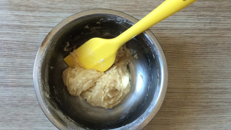 4. 用刮刀拌均匀,和成面团