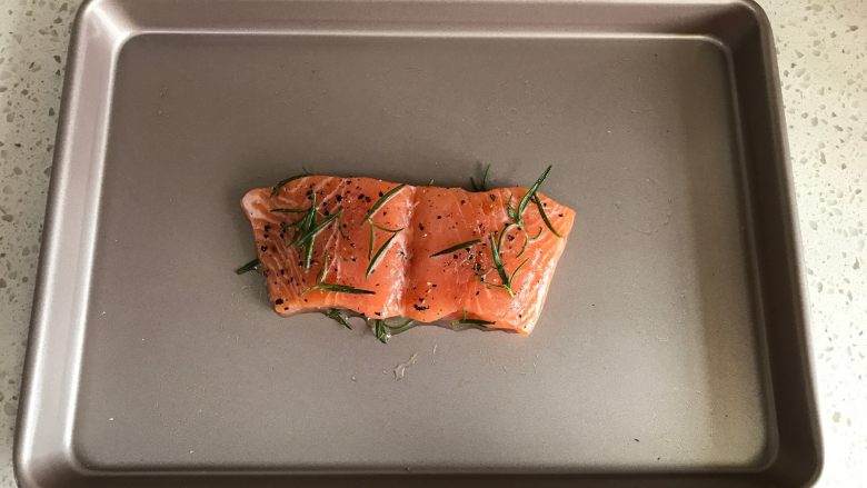 儿子从日本回来一直说那边的三文鱼有多好吃,我确实有点稍不服气,所以这个周末趁儿子在家,给他烤了这道迷迭香三文鱼,制作不复杂,用料也简单,清淡中夹杂一丝迷迭香的特殊气味,儿子说迷迭香的量用到刚刚好,既没有掩盖三文鱼本身的鲜味,又有一种神秘的迷迭香味,真的挺不错。