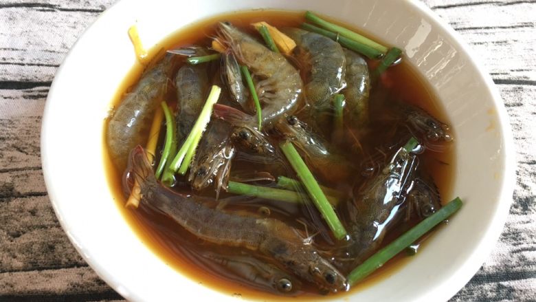 8. 茶水过虾面,泡一个小时左右!这一步为去腥,吸收茶叶的清香