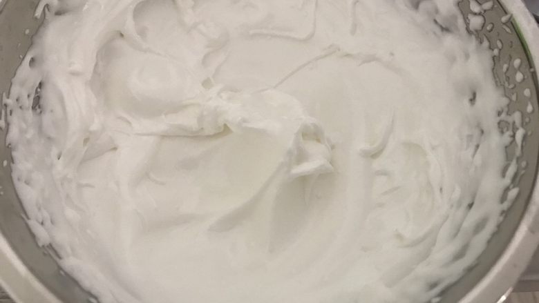 7. 打发好的蛋白霜呈硬性,倒扣不会流淌