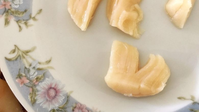 6. 洋葱去皮切两头,然后切成丝,现在我们可以预热烤箱喽200度哈。