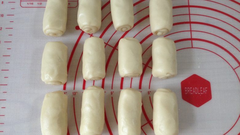 10. 将松弛好的油皮平均分成12份,每份23g左右