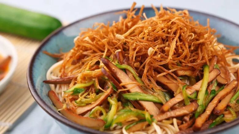 翔宇大厨师兄:大热的天,送碗凉面给你们降降温,哈哈!这道凉面的灵魂在于红油辣椒,加了红油辣椒的凉面,味道特别足!香到想想就馋得流口水。加上自己喜欢的小菜保证营养又爽口。 我放了茶干、金针菇,调匀浇在面上就可以了。而且卡路里低,没有罪恶感,又保证了蛋白质、菌蛋白、维生素和碳水化合物的摄入。 面条根根筋道分明,带有食材的香气和酱料放入咸鲜,还有一点微微的辣味,再加点炸酥的金针菇丝和酱香的茶干,清爽的黄瓜丝,简直是人生最爱!
