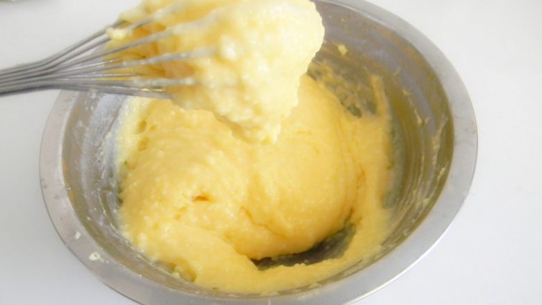 6. 搅拌至顺滑状态,挑起呈倒三角,尖角底部约4厘米就可以了