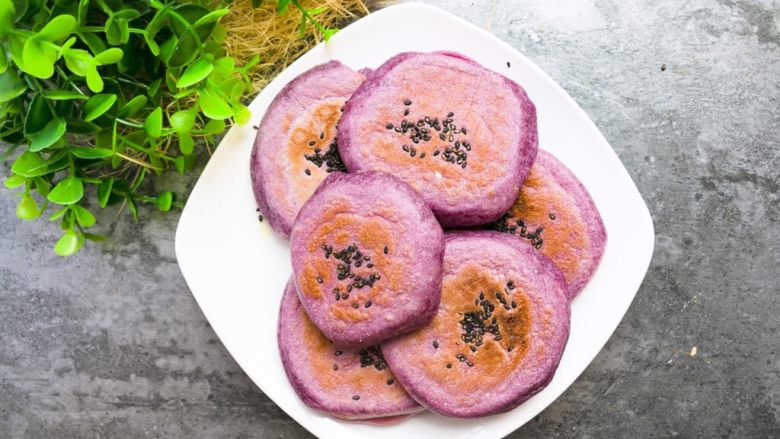 5. 电饼铛煎: 包好后压扁撒点黑芝麻,放入电饼铛或者平底锅中 小火煎,可以放油,我用电饼铛一共煎了9分钟, 内软外脆。 平底锅也可以的