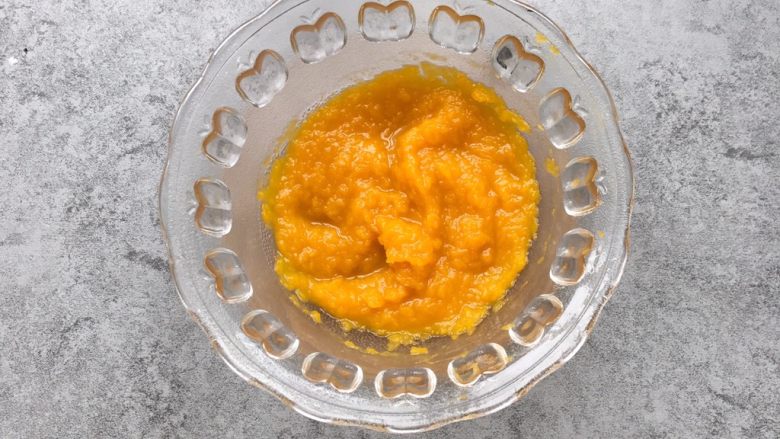 4. 蒸熟用勺子按成泥状,蒸出的南瓜水不用倒掉