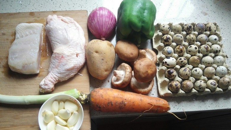 14. 再把土豆,胡萝,卜木耳,鹌鹑蛋这类水分含量少的配菜下锅,不要搅动