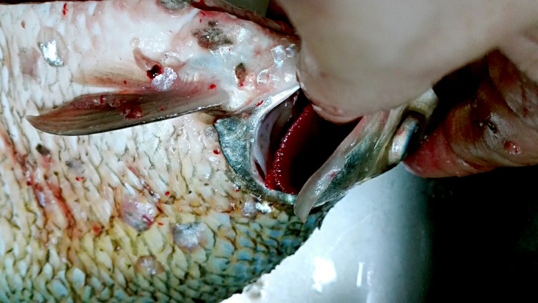 2. 破开鱼肚扒掉雨内脏 一定要撕掉里面黑膜,不然腥味大