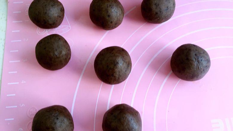 9. 饼皮面团分成17克一个,搓圆。(盖保鲜膜哦)