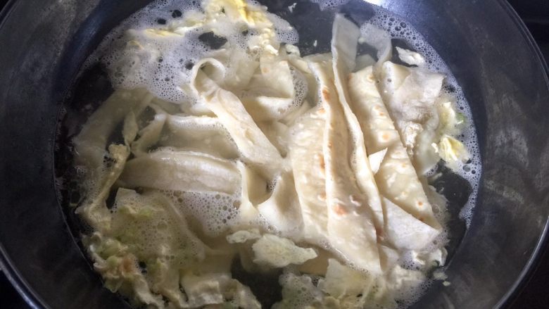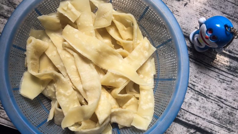 14. 把面饼切成条状(大小、宽度了根据自己喜好切大小)
