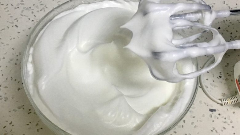 3. 淡奶油低速打发至八九分发,只要不是太干就行。