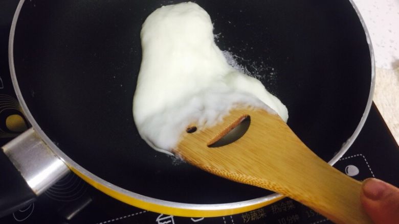 6. 中小火不停搅拌 炒至面团洁白细腻