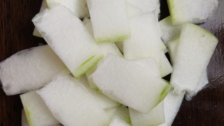 2. 冬瓜去皮、去籽,洗干净后切成薄片。